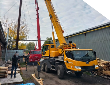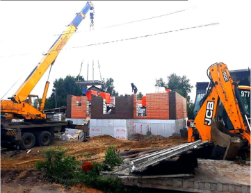 Строительство жилого дома с помощью автокрана 25 тонн и экскаватора-погрузчика